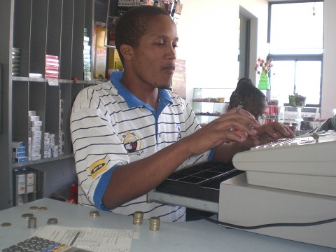 Sizwe is the cashier at Galp so the drill goes as follows. Gail and I stand in front of the counter, off to the side a bit, while Sizwe is behind the register checking out customers as they come in and out of the store. He stays pretty busy with customers but some how God always allows us to carry on in some sweet conversation.